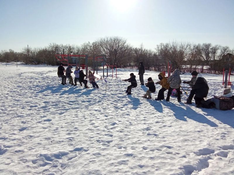 Затем ребята дружно участвовали в традиционных народных забавах и играх: «Карусель», «Силачи», «Печём блины» и других. Не обошлось без традиционного конкурса - перетягивание каната, который получился очень зрелищным. Старшие мальчики решили перетянуть малышей, но это удалось им с большим трудом. Малыши упорно сопротивлялись.