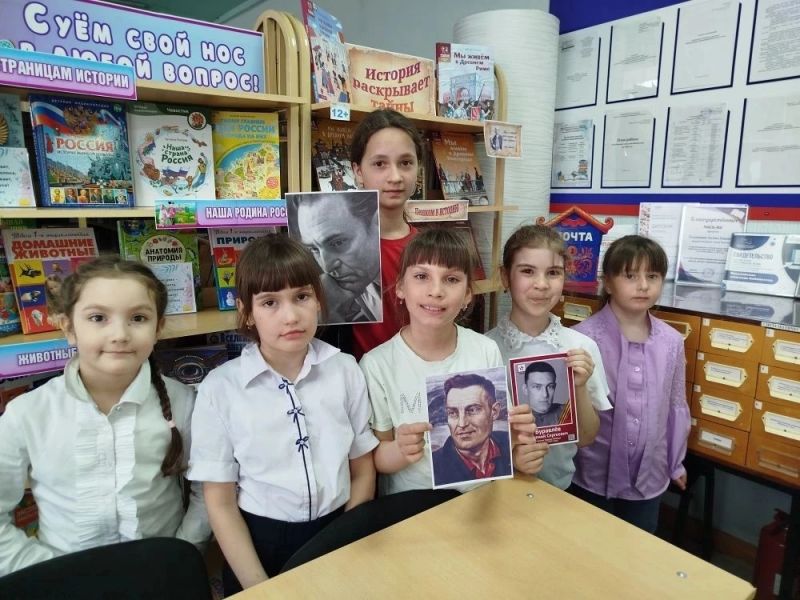 Специалист библиотеки познакомила ребят с интересными фактами из жизни автора. Ребятам было интересно узнать, что Евгений Сергеевич окончил среднюю школу № 56 в поселке Промышленная, был участником Парада Победы 24 июня 1945 года.