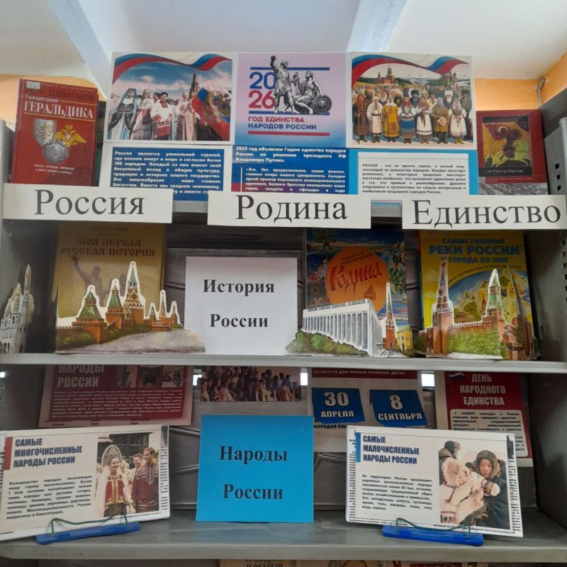 В рамках Года единства народов России в Тисульской библиотеке оформлена выставка "Россия. Родина. Единство."