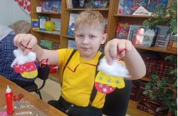 В библиотеке семейного чтения имени Тамары Рубцовой прошел новогодний мастер-класс. В преддверии волшебного сказочного праздника в каждой семье достают коробку с новогодними игрушками. Стеклянные елочные украшения, керамические, картонные, деревянные, из ваты – со многими из них зачастую связана какая-то новогодняя история. Гости мероприятия совершили экскурс в историю новогодних украшений прошлого столетия. Вниманию присутствующих были представлены самые разные игрушки из собственных коллекций библиотекарей и читателей: на прищепках, плоские, шары, блестящие сосульки, фонарики, домики, шишки и пирамидки. Чтобы праздник казался по-настоящему волшебным, участники встречи своими руками изготовили варежку из воздушного пластилина, украсив ее ватой и различным декором. Дополнением к мероприятию стала выставка сказок, сюжетом которых была варежка или рукавица: «Незнайка в солнечном городе» Н. Носова, «Рукавицы и топор» Е. Пермяка, «Верблюжья варежка» Г. Снегирёва, народная сказка «Рукавичка» и другие.