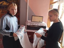 В уголке старинного быта гости могли ознакомиться с готовыми изделиями вышивки.
